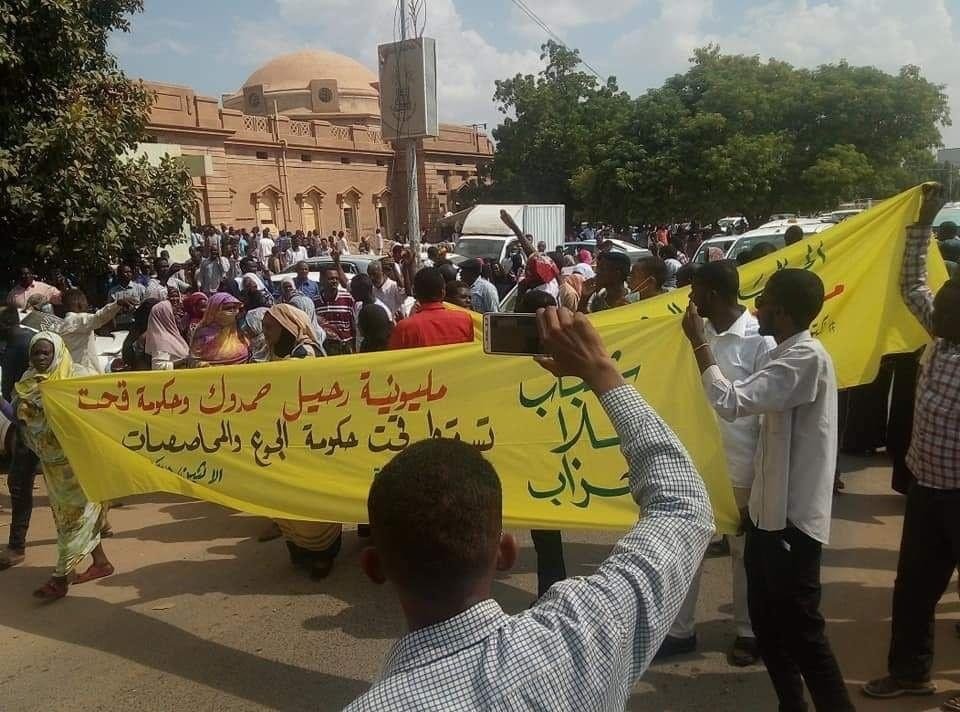 وندد المتظاهرين بالحكومة الانتقالية، وطالبوا باسقاطها وحملوها الفشل في وضع حد للازمة الاقتصادية الطاحنة التي تمر بها البلاد.