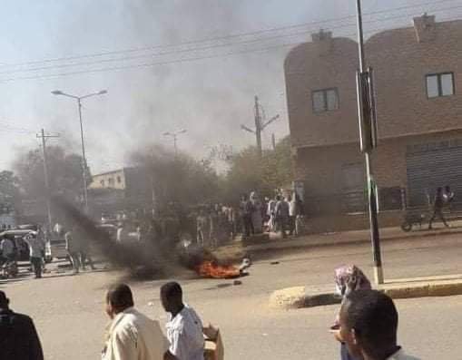 وأضرم المحتجين النيران في إطارات السيارات في الشوارع الرئيسية فضلاً عن أشعال النيران في محال تجارية وبنك المزارع ومباني بلدية القضارف.