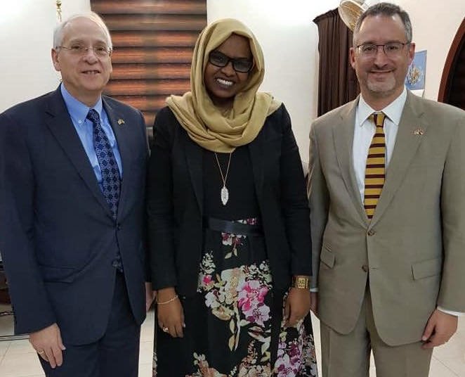 وقال القائم بالأعمال الأمريكي في السودان براين شوكان في تغريدة له عبر “تويتر” أنه والمبعوث الخاص دونالد بوث أكدو في اجتماعهم أمس مع وزيرة العمل لينا الشيخ دعم أمريكا للتحول الديمقراطي في السودان وتشجيعها و تصميمها علي محاربة الفقر والفساد .