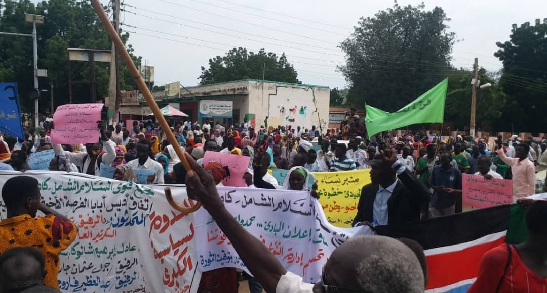 وأضاف قائلاً: ”ليكن حضورنا ومشاركتنا في هذا الموكب مشاركة في بناء السلام الذي لا يكتمل بالاتفاقات وحدها، بل بشراكة المجتمع وضمانه، فالسلم الأهلي هو المعنى الحقيقي وجوهر السلام، وننادي كل الثائرات والثوار للوقوف معًا داعمين ومطالبين ببذل كل الجهد لإسكات الحرب وإيقاف نزيف الدماء“.