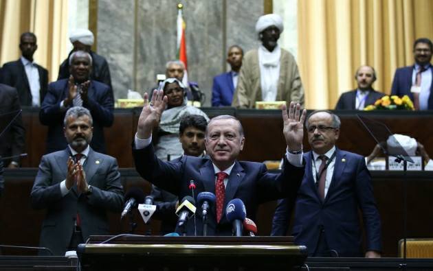أغلقت الطرق و شوارع العاصمة أمس احتفاءا وتأمينا لزيارة أردوغان الرئيس التركي، وهي تعتبر زيارة نادرة من نوعها لقيادة تركية من هذا المستوى للسودان. والرجل الذي أصبح معروف بديكتاتور تركيا خاصة بعد انتخابه رئيسا وقمعه لمعارضيه بعد محاولة الانقلاب الأخيرة عليه، فهو يرى في نفسه مجدد روح تركيا وامبراطور الدولة العثمانية الجديدة التي يسعى إلى انشائها. لكن الرجل أيضا هو في الأساس رجل أعمال ناجح نقل تركيا نقلات اقتصادية نوعية في فترة قصيرة جدا مما ضمن له مكانة خاصة لدى الأتراك، وبالتالي فإن مشروعه التوسعي له جانب اقتصادي بالدرجة الأولى إضافة إلى الجانب السياسي.