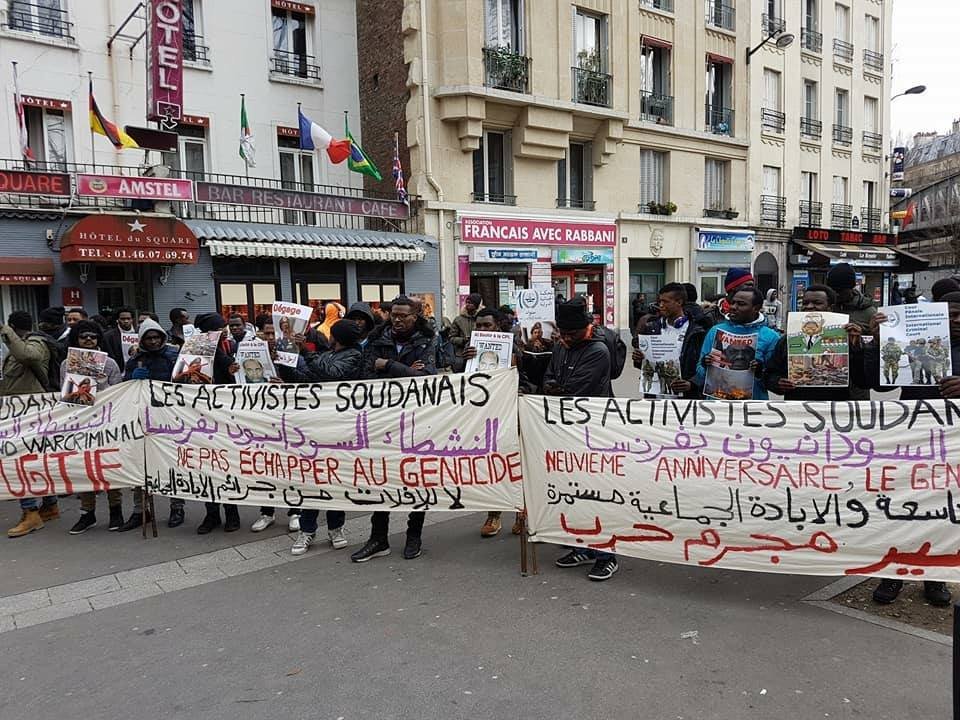 ونظم النشطاء السودانيون بالعاصمة الفرنسية باريس مظاهرة كبرى إحياء لذكرى إصدار مذكرات توقيف بحق مرتكبي جرائم الحرب و الإبادة الجماعية والتطهير العرقي في الإقليم.