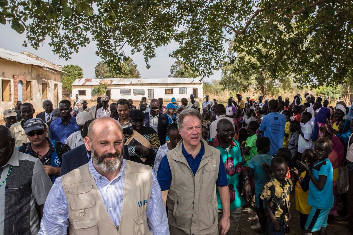 وسافرت المديرة التنفيذية ماكين إلى الرنك في شرق جنوب السودان حيث عبر ما يقرب من 600،000 شخص من السودان خلال الأشهر العشرة الماضية. كما زارت المديرة التنفيذية لبرنامج الأغذية العالمي مخيمات العبور المزدحمة حيث تصل الأسر جائعة وتواجه المزيد من الجوع.