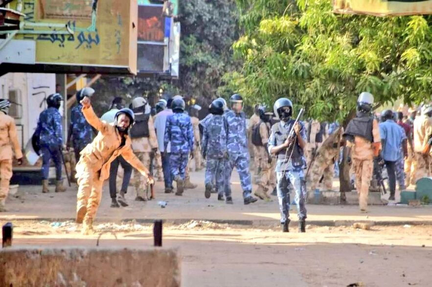 وشهدت عدة أحياء في الخرطوم احتجاجات مناهضة للإنقلاب العسكري، وواجهة قوات الأمن المتظاهرين باستخدام الرصاص والغازات المسيلة للدموع.