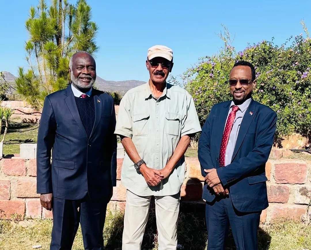 بحث الرئيس الإريتري أسياس أفورقي، مع وزيري المالية السوداني الدكتور جبريل إبراهيم، والثقافة والإعلام والسياحة الأستاذ خالد الإعيسر، سبل تعزيز وتطوير العلاقات الثنائية بين السودان وإريتريا، والتنسيق المشترك حول القضايا ذات الاهتمام المتبادل.