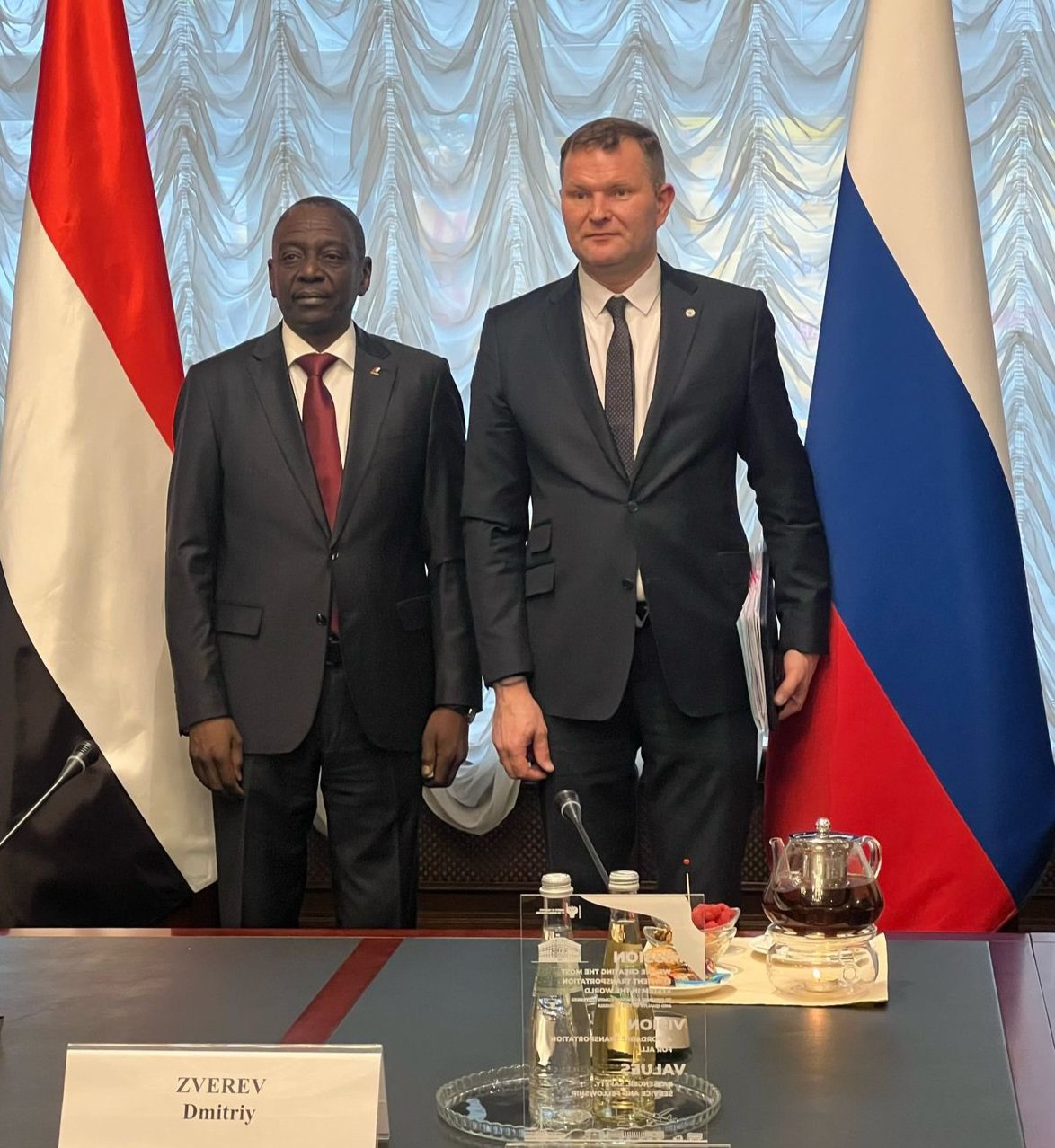 أجرى السفير السوداني لدى روسيا، محمد الغزالي، لقاءً وصفه بـ”الهام والمثمر” مع نائب وزير النقل الروسي ديميتري أزفيدف، بحضور عدد من مساعدي المسؤول الروسي، ورئيس مجلس الأعمال الروسي السوداني فيكتور شيمادانوف.