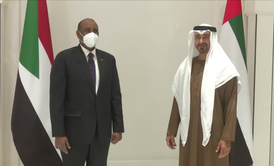 وتناول المباحثات العلاقات الثنائية بين الخرطوم وابوظبي في مختلف المجالات، وأعرب البرهان عن أمله في تطوير وتمتين أواصر العلاقات بين البلدين في المجالات كافة.