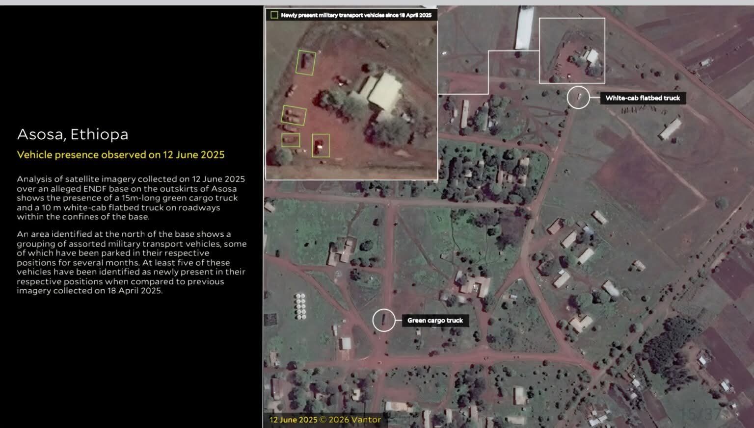 كشف مختبر الأبحاث الإنسانية بجامعة ييل الأمريكية عن أدلة قوية تؤكد تقديم دعم عسكري لمليشيا الدعم السريع من داخل قاعدة للجيش الإثيوبي بمدينة أصوصا. وأوضح المختبر أن هذا النشاط تم رصده في الفترة ما بين ديسمبر 2025 ومارس 2026.