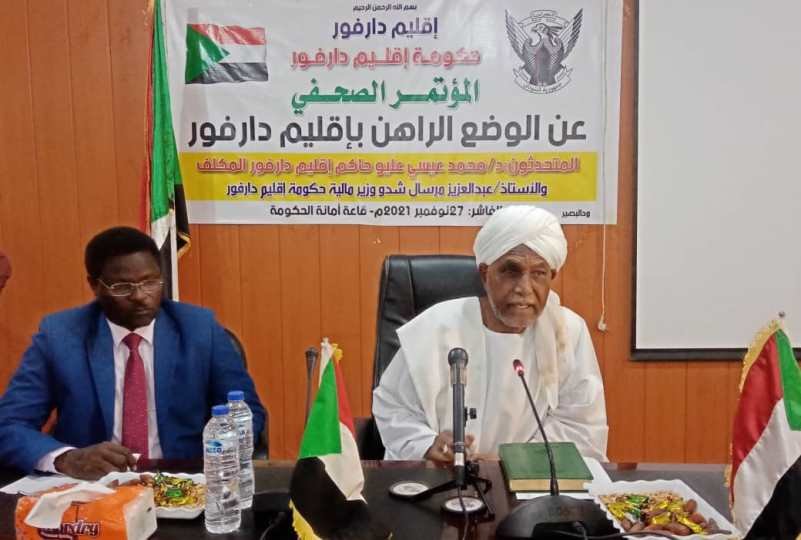 وقال محمد عيسى عليو حاكم إقليم دارفور المكلف في مؤتمر صحفي عقده ظهر “السبت” بحضور وزير مالية الإقليم ومستشار الحاكم الأمني أنه وقف على مجمل الاوضاع التنمية، وأكد أن الأحداث الأمنية التي شهدتها منطقة جبل مون تأتي امتدادا لحالة السيولة الأمنية التي تعيشها الولايات الخمس هذه الأيام والتي عزاها عليو الي عدم تنفيذ بند الترتيبات الامنية التي نصت عليها برتكولات اتفاقية جوبا للسلام التي تم توقيعها في مطلع شهر أكتوبر من العام الماضي والتي نصت من ضمن بنودها على انشاء قوة أمنية مشتركة قوامها 12 الف ضابط وجندي من القوات النظامية وقوات حركات الكفاح المسلح لحماية المدنيين وإعادة الاستقرار الاقليم حتى تنطلق في رحاب التنمية والتقدم .
