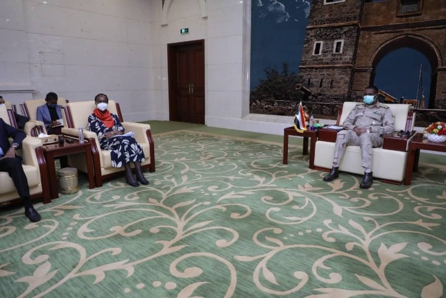 وإلتقى حميدتي”الثلاثاء” بوفد مجلس السلم والأمن الأفريقي الذي يزور البلاد برئاسة المندوب الدائم لكينيا لدى الاتحاد الأفريقي، جين كاماو،وناقش مع الوفد عدة قضايا تشغل البلاد في إطارها الأفريقي .