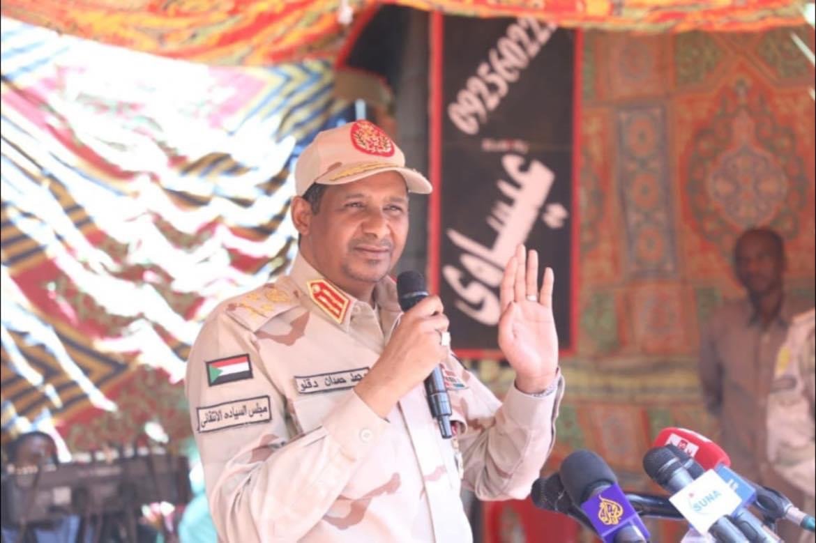 وأكد لدى مخاطبته قطاع الدعم السريع بالجنينة ”الأحد“ أن قوات الدعم السريع قومية التكوين والانشاء، وتضم كل ولايات وقبائل السودان، وتابع ”هنالك عمل ممنهج واجندة ضد هذه القوات.“