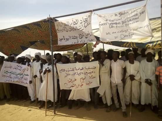 ويطالب النازحين، بتوفير الأمن، ونزع سلاح الملشيات بمسمياتها المختلفة، وتسليم مرتكبي جرائم الابادة الجماعية وجرائم التطهير العرقي وجرائم ضد الإنسانية وجرائم الحرب الي المحكمة الجنائية الدولية.