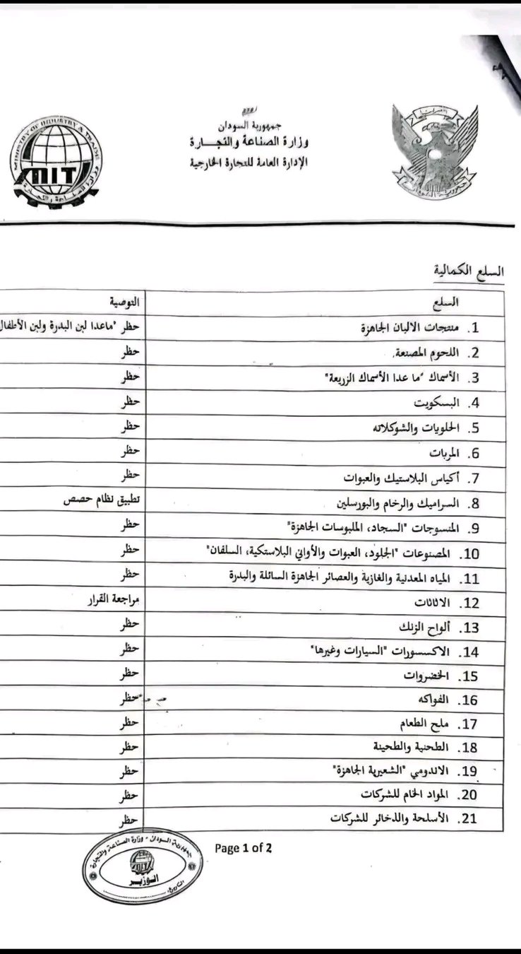 من جانبه، استقبل الشارع السوداني والدوائر الاقتصادية هذا القرار بقبول واسع، حيث اعتبره مراقبون خطوة ضرورية لحماية الإنتاج المحلي وتقليل الضغط على سعر صرف الجنيه السوداني، مطالبين بضرورة تشديد الرقابة على الموانئ والمعابر لضمان تنفيذ القرار ومنع عمليات التهريب للسلع المحظورة.